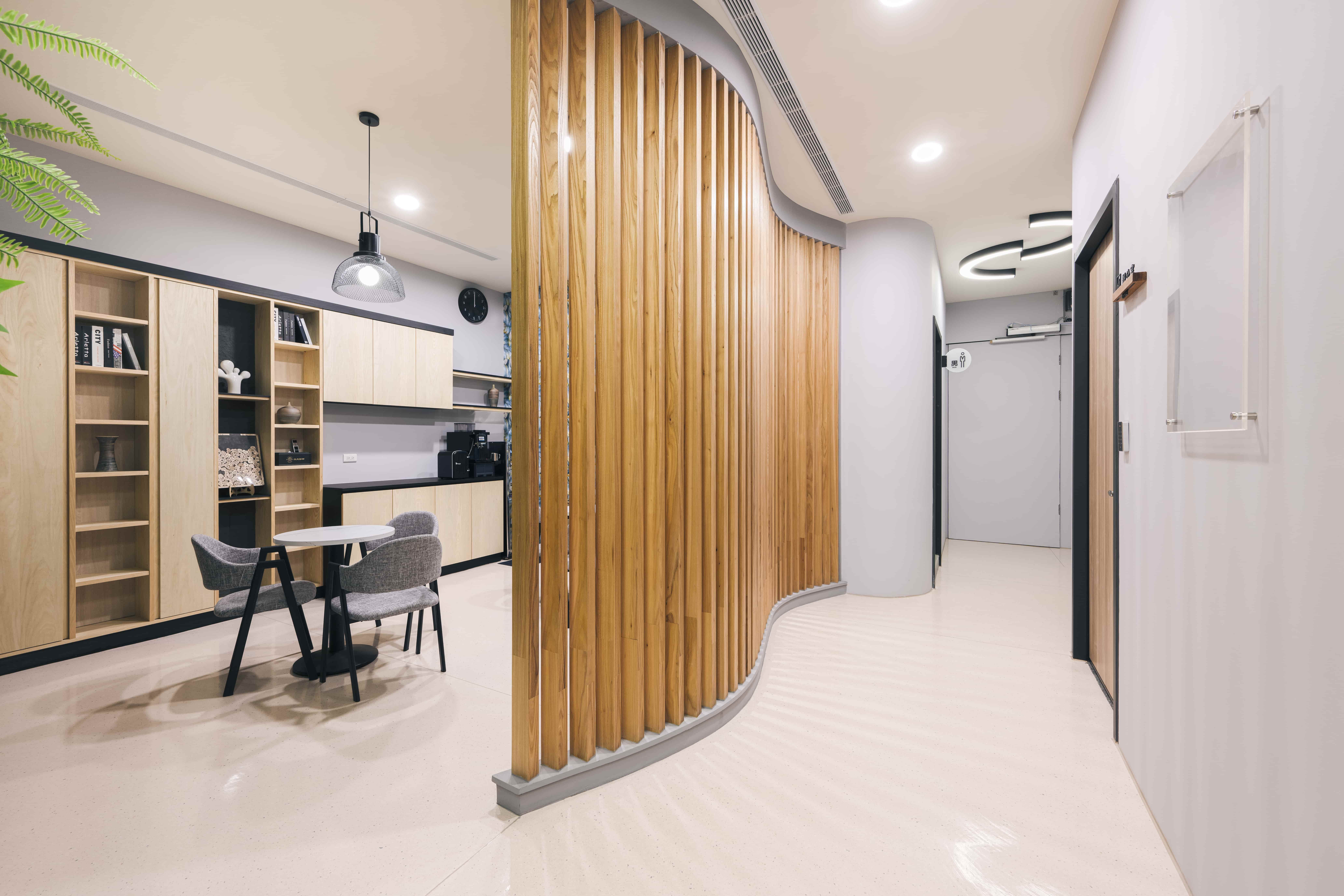 以「還元返本」為整體空間的主軸 克服狹長型空間限制,使空間利用最大化 以極簡又富有內涵的建材,呼應專業醫療的深厚內力 從建材本質的環保再生到表面的抗菌易維護 內而外紮實呈現「還元返本」的主軸 【設計師】呂亮瑩 ‧ Cora Lu/林芝瑜 ‧ Joanne Lin/陳帟杉 ‧ Nora Chen